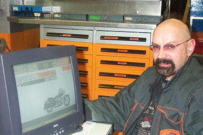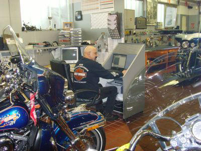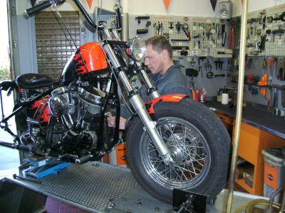 ERICH , Kfz Meister und unser Harley Profi der ersten Stunde . Seit nunmehr 35 Jahren leitet er unsere